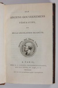 SAINTE-CROIX, G.E.J. de) : Des anciens gouvernemens fédératifs, et de la législation de la Crète. Jansen, An VII (1798).