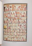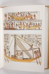 23,5 par 33 cm. Daim fauve avec décors en couleurs sur le dos et les plats, tranches dorées, gardes en soie moirée, sous étui de tissu écru. (Reliure de l'éditeur).