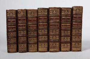9 par 16 cm. (4)-732 ; (4)-645 ; (4)-759 ; (4)-782 ; (4)-768 et 16 planches hors-texte ; (4)-755 ; (4)-716-(4) pages et une gravure. 17 planches au total. Plein veau d'époque, dos 5 nerfs, pièce de titre et de tomaison rouge, caissons bien ornés, roulette sur coupe. Petits défauts mineurs sur 2 coiffes. Fine mouillure claire et discrète en marge haute de deux volumes, sinon bon état.