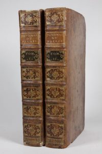 25 par 39,5 cm. (24)-964-(30) ; (16)-1042 pages. Plein veau d'époque, dos 6 nerfs, pièce de titre fauve, de tomaison noire, caissons décorés. Petits défauts (coins usés, petits défauts aux coiffes, petits manques sur des mors, ). Un petit trou en marge des premiers feuillets du tome 1, et des derniers feuillets du tome 2 (là encore sans gravité). Mouillure claire sur la marge des 4 premiers feuillets.