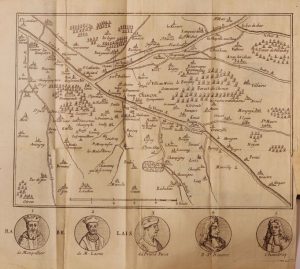 Elle renferme une carte repliée du Chinonais, ornée de portraits de Rabelais, de l'auteur et du dédicataire de l'ouvrage.