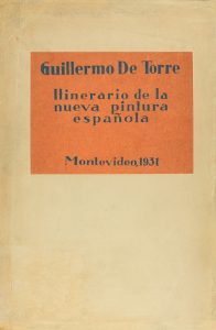 .1931.. LIBRO: .(ARTE).. .TORRE, GUILLERMO DE:. .ITINERARIO DE LA NUEVA PINTURA ESPAÑOLA.. Montevideo: s. imp., 1931. 8º mayor. 36 p.+ 9 lám. con 18 ilustr. fuera del texto. Antiguo sello húmedo. Rústica original. Edición original muy rara....
