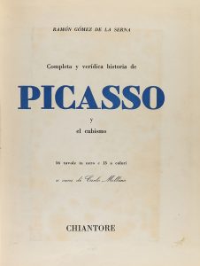 .[1945].. LIBRO: .(ARTE-PICASSO).. .GÓMEZ DE LA SERNA, RAMÓN:. .COMPLETA Y VERÍDICA HISTORIA DE PICASSO Y EL CUBISMO. 56 tavole en nero e 15 a colori a cura di Carlo Mollino.. [Torino]: Ed. Chiantore, s.a [1945]. 4º mayor. Profus. ilustr. con...