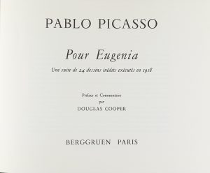 .1976.. LIBRO: .(ARTE-PICASSO).. .PABLO PICASSO. Pour Eugenia. Une suite de 24 dessins inédits exécutés en 1918. Préface et Commentaire par Douglas Cooper.. Paris: Berggruen, 1976. Folio menor apaisado. 21 p. + 29 h. Descripción enfrentada a la...