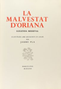 .1948.. LIBRO: .(BIBLIOFILIA-GRABADOS).. .CARNER, JOSEP; PLA, JAUME [Ilustr.]:. .LA MALVESTAT D´ORIANA. LLEGENDA MEDIEVAL. Ilustr. amb aiguaforts en color de Jaume Pla.. Barcelona: Edicions de la Rosa Vera, 1948. 2 vol. en folio. I: LA MALVESTAT...