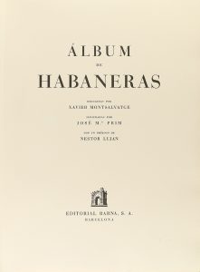 .1948.. LIBRO: .(BIBLIOFILIA).. .MONTSALVATGE, XAVIER:. .ALBUM DE HABANERAS.. Prólogo de Néstor Luján. Barcelona: Ed. Barna, 1948. Folio. 93 p., 2 h. 20 láminas con litografías de J.M Prim y un gouache original del artista. En rama, presentado...