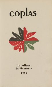 .1955.. LIBRO: .(BIBLIOFILIA-CLAVÉ).. .LEVIS MANO, GUY; MONOD, BLAISE; CLAVÉ I SANMARTI, ANTONI; JONQUIERES, HENRI:. .COPLAS.. [Paris: Le coffret de fleurette], 1955. 8º. 28 h. Bellamente ilustr. con viñetas grabadas al boj por CLAVÉ. Texto en...