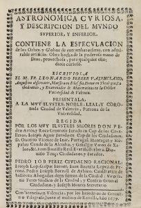 .1677.. LIBRO: .(ASTRONOMÍA-COSMOGRAFÍA).. .FERRER, LEONARDO:. .ASTRONOMICA CURIOSA Y DESCRIPCION DEL MUNDO SUPERIOR, Y INFERIOR. Contiene la especulación de los Orbes, y Globos de entrambas esferas.... Valencia: herederos de Geronimo Vilagrasa,...