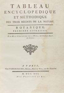 .1791-1793.. LIBRO: .(BOTÁNICA-CIENCIAS).. .LAMARCK, JEAN-BAPTISTE DE MONET DE:. .TABLEAU ENCYCLOPÉDIQUE ET MÉTHODIQUE DES TROIS RÈGNES DE LA NATURE. BOTANIQUE. PREMIERE LIVRAISON [TOME 1]. TOME SECOND.. Paris: Chez Panckoucke, 1791. 3 vol. en...