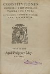 .1580.. LIBRO: .(TARRAGONA).. .CONSTITUTIONUM PROVINCIALIUM TARRACONENSIUM LIBRI QUINQUE.. Tarracone: apud Philippum Mey, 1580. 8º mayor. 28 h.+ 411 p.+ 24 h. Marca tipográfica en portada. Texto con apostillas marginales.[Sigue:] .CONSTITUTIONES...