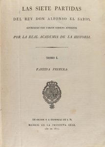 .1807.. LIBRO: .(DERECHO ESPAÑOL-HISTORIA).. .SABIO, ALFONSO EL:. .LAS SIETE PARTIDAS DEL REY DON ALFONSO EL SABIO COTEJADAS CON VARIOS CODICES ANTIGUOS POR LA REAL ACADEMIA DE LA HISTORIA.. Madrid: Imp. Real, 1807. 3 vol. en 4º mayor. I: LXI + 525...