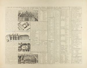 Extraído del ´Atlas Historique´ publicado en Amsterdam entre 1705 y 1720. Todo el texto en plancha, dos hojas unidas por el centro, 34 x 44,5 cm huella y 40 x 51 cm papel. Lleva cinco grabados de El Escorial, El palacio del arzobispo, el palacio real de Madrid, la casa real en Aranjuez y la plaza Mayor.