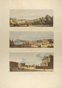 .1806.. GRABADO: .(BARCELONA).. .MOULINIER, JACQUES; BAUGEAN, J. JEROME; LORIEUX, F. B.; DIDOT, PIERRE; LABORDE, ALEXANDRE DE:. .TRES VISTAS: VISTA DE BARCELONA TOMADA EN SARRIA EN EL JARDIN DE LOS CAPUCHINOS/ VISTA DE UNA PARTE DEL PUERTO DE...