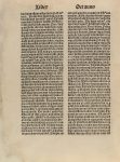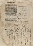 filigrana. Texto a dos columnas en letra gótica. Enc. de época en plena piel con hierros secos en ambos planos, pérdida de piel en un tercio del plano anterior, quedando visible el alma de madera, falto de lomera, restos de cierres metálicos. En el interior de ambos planos se observa la reutilización de una antiguo cantoral como parte de la enc. Anotaciones manuscritas de época. Intermitente cerco de humedad. Restauraciones marginales el los primeros y últimos folios; pequeñísima falta de papel en el margen interior de las primeras hojas; taladro diminuto. LA RATIONALE es la obra más célebre y más reimpresa durante los siglos XV, XVI y XVII de Guillaume DURAND, de renombre El Especulador. Nacido en Puy-Moisson, cerca de Riez (Béziers) hacia 1232. Después de haber cursado derecho en Lyon y Bolonia fue llamado a la Corte de Roma donde ostentó importantes cargos al lado de varios papas. La violencia con la que reprimió una revuelta cerca de Forli contra el Vaticano le supuso tantas enemistades que se vió obligado a volver a Francia donde fue primero Prior de la iglesia de Chartres y Obispo en Mende (1287). Murió en 1296.. .CCPB 109475-0. IBE 2240. ISTC id00438000.