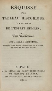.1822.. LIBRO: .(HUMANIDADES).. .CONDORCET, PAU:. .ESQUISSE D´UN TABLEAU HISTORIQUE DES PROGRÈS DE L´ESPERIT HUMAIN.. Paris: Libr. Brissot-Thivars, 1822. 12º. 2 h. + XXIII + 480 p. Enc. en cartoné papel al agua, tejuelo, cortes jaspeados.