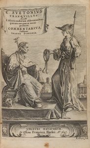+ 850 p. + 40 h. Los comentarios a pie a dos columnas. Retratos grabados de los 12 césares. Portada con grabado alegórico firmado por R. A. Persyn. Enc. en pasta española, nervios, cantos rozados. CCPB 498282-7.