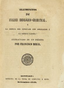 .1848.. LIBRO: .(GRAMÁTICA).. .[SILVA PIMENTA, JOSÉ IGNACIO DA]:. .ELEMENTOS DE ANALISIS IDEOLÓGICO-GRAMATICAL, O LA CIENCIA DEL LENGUAJE CON APLICACIÓN A LA LENGUA LATINA. EXTRACTADO DE UN INÉDITO POR FRANCISCO MIRÁS.. Santiago [de...