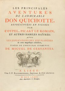 .1776.. LIBRO: .(CERVANTINA).. .CERVANTES, MIGUEL D:. .LES PRINCIPALES AVENTURES DE L´ADMIRABLE DON QUICHOTTE, REPRESENTE EN FIGURES PAR COYPEL, PICART LE ROMAIN ET AUTRES HABILES MAITRES.. Liege: chez J.F. Bassompierre, 1776. 4º mayor. VIII + 356...