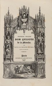 Stalker. Preciosa enc. edit. firmada por SIMIER R. DU ROI con hierros secos tipo catedral, hilos dorados, cantos y cejas, lomera cuajada, nervios, cortes dorados, busto dorado en plano anterior y posterior. Preciosa primera edición del Quijote en miniatura. Palau 52051. Se editó bajo la dirección de Joaquín María Ferrer, gran admirador de Cervantes. Se tiraron 1000 ejemplares. Esta edición microscópica imita las que por enconces se habían publicado en Londres de las obras de Cervantes. Aunque Palau lamenta el papel usado, si bien era de buena calidad, produce manchas amarillas en algunos ejemplares, este que ponemos a su alcance está muy limpio.