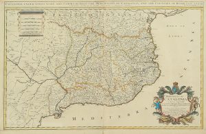 .1698 ca.. MAPA: .(CATALUNYA).. .BERRY, WILLIAM y SANSON:. .PRINCIPALITY OF CATALONIA IN WHICH ARE COMPREHENDED THE COUNTIES OF ROUSSILLION AND OF CERDAGNE DIVIDED INTO ITS SEVERAL VIGUERIES OR PROVOST-SHIPS.. London: William Berry, 1680 ca. 58 x 90...