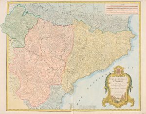 .1720 ca.. MAPA: .(CATALUNYA-ARAGÓN).. .VAUGONDY, ROBERT DE:. .ETATS DE LA COURONNE D´ARAGON OU SE TROUVENT LES ROYAUMES D´ARAGON ET DE NAVARRE, LA PRINCIPAUTÉ DE CATALOGNE.. Paris: Chez Delamarche, s.a. 50 x 61,5 cm huella, 51 x 64 cm papel....