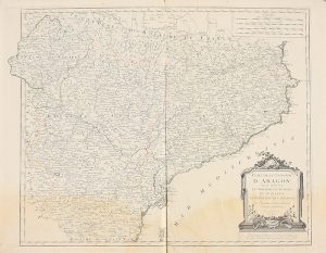 .1776.. MAPA: .(CATALUNYA-ARAGÓN).. .VAUGONDY, ROBERT DE:. .ETATS DE LA COURONNE D´ARAGON OÙ SE TROUVENT LES ROYAUME D´ARAGON ET DE NAVARRE, LA PRINCIPAUTÉ DE CATALOGNE.. Venise: P. Santini, 1776. 49 x 62 cm huella, 51 x 66,5 cm papel. Ligero...