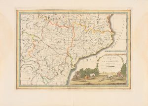 .1794.. MAPA: .(CATALUNYA-ARAGÓN).. .L´ARAGONA E LA CATALOGNA DELINEATE SULLE ULTIME OSSERVAZIONI.. Roma: Presso la Calcografia Camle, 1794. 35,5 x 49 cm huella, 45 x 61,5 cm papel. Grabado al cobre, firmado en plancha por Gio. Mª Cassini. Cartela...