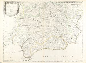 Huella: 41 x 54 cm, papel: 43,5 x 59,5 cm. Mapa grabado al cobre a doble página apaisada en papel verjurado con filigrana. Límites iluminados a mano. Mínimas rasgaduras periféricas y sutil señal de doblez central.