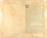 practicamente la huella. Dos pequeñas rasgaduras periféricas en el margen superior. Antigua señal de doblez central.