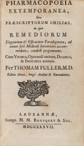 .1737.. LIBRO: .(MEDICINA).. .FULLER, THOMAM:. .PHARMACOPOEIA EXTEMPORANEA, SIVE PRAESCRIPTORUM CHILIAS, IN QUA REMEDIORUM ELEGANTIUM ET EFFICACIUM PARADIGMATA, AD OMNES FERE MEDENDI INTENTIONES.... Lausannae: Sumpt. M. M. Bousquet & Soc., 1737. 8º...