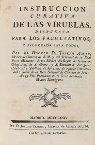 .1774.. LIBRO: .(MEDICINA).. .AMAR, JOSEPH:. .INSTRUCCION CURATIVA DE LAS VIRUELAS, DISPUESTA PARA LOS FACULTATIVOS.. Madrid: Imp. Joachin Ibarra, 1774. 8º. XIX + 164 p. y un retrato grabado. [Más:] .BALCELLS I CAMPS, JOSEF: MEMORIA FISICO-QUIMICA...