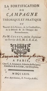 .1769.. LIBRO: .(POLIORCÉTICA).. .CUGNOT, M.:. .LA FORTIFICATION DE CAMPAGNE THÉORIQUE ET PRATIQUE ou traité de la Science, de la Construction, de la Défense & de l´Attaque des Retranchemens par.... Paris: Chez C.A. Jombert, 1769. 8º. XV + 341...