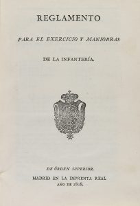 .1808.. LIBRO: .(MILITARIA).. .REGLAMENTO PARA EL EXERCICIO Y MANIOBRAS DE LA INFANTERÍA.. Madrid: Imp. Real, 1808. 2 vol. 8º mayor. I: 2 h. + 429 p. II: EXPLICACION DE LAS LAMINAS. 146 p. y LXVIII lám. plegadas. Dos vol. enc en pasta española,...