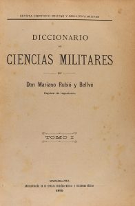.1895.. LIBRO: .(MILITARIA).. .RUBIÓ Y BELLVÉ, MARIANO:. .DICCIONARIO DE CIENCIAS MILITARES.. Barcelona: Adm. de la revista científico-militar, 1895. 3 vol. en 4º menor. I: 986 p. II: 1015 p. III: 963 p. Tres vol. enc. en media piel, uno...