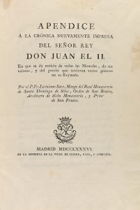 .1786.. LIBRO: .(NUMISMATICA).. .SAEZ, LICINIANO:. .APENDICE A LA CRONICA NUEVAMENTE IMPRESA DEL SEÑOR REY DON JUAN EL II EN QUE SE DA NOTICIA DE TODAS LAS MONEDAS, DE SUS VALORES, Y DEL PRECIO QUE TUVIERON VARIOS GENEROS EN SU REYNADO.. Madrid:...