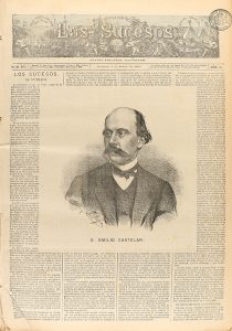 793 (9 de mayo de 1869). Texto a cuatro columnas, ilustr. en texto. Periódico de carácter generalista aparecido en la segunda mitad del s. XIX, fundado por el célebre periodista y escritor Ángel de los Ríos. Diario en que se localizan artículos de opinión y noticias de sucesos con tímidos inicios sensacionalistas. Enc. en media piel y puntas muy rozada y desprendida.