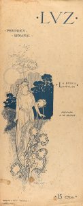 .1898.. REVISTA: .(MODERNISMO).. .[RIQUER, ALEXANDRE:].. .LUZ.. Barcelona: Imp. P. Ortega, 1898. 3 números de la revista en folio estrecho. Números 2, 9 y 10 de la revista de carácter semanal. Las tres cubiertas ilustradas por A. de Riquer. Las...