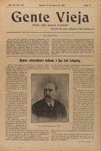.1904-1905.. REVISTA: .(ANTIMODERNISMO).. .GENTE VIEJA. ÚLTIMOS ECOS DEL SIGLO.. Madrid: Imp. de Antonio Pérez, 1904-1905. Núm. 101 a 15 de enero de 1904 al núm. 141 a 30 de setiembre de 1905. 140 núm. consecutivos 8 p. c/u aprox. Ilustr. en...