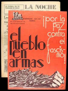 septiembre y octubre de 1937), Treball organ central del partit socialista unificat de Catalunya (2), El dia òrgan del partit socialista unificat-radi terrassa (maig 1937), La Rambla (juliol de 1937), Suport (2), Mundo obrero, Frente Rojo (3); Mañana, ABC diario republicano de izquierdas, Revista del hogar, Ejercito del pueblo, Boletín de información cultural, Solidaridad Obrera, Última hora, Juliol, La noche. Incluye además un cartel publicitario de un film antifascista ¡Por la paz contra el fascismo!. En general buena conservación.