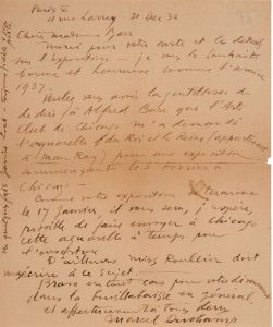 DUCHAMP Marcel (1887-1968) L.A.S. «Marcel Duchamp», Paris 21 décembre 1936, à Mme Alfred BARR …