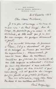 MAGRITTE René (1898-1967) L.A.S. «René Magritte», Bruxelles 18 novembre 1964, à Henri MICHAUX …