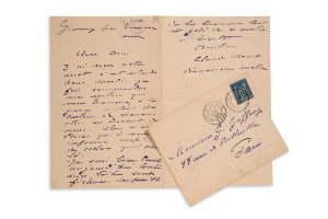 L.A.S. «Claude Monet», Giverny [21 octobre 1888], à Gustave GEFFROY ; 1 page et demie in-8, enveloppe.