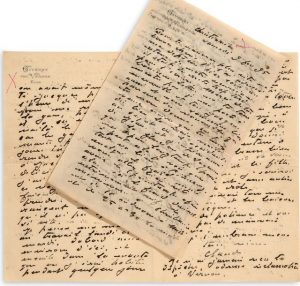 L.A.S. «ton vieux Claude», Christiania 9 février 1895, à SA FEMME ALICE ; 6 pages in-8 à en-tête de Giverny (quelques marques au stylo rouge).