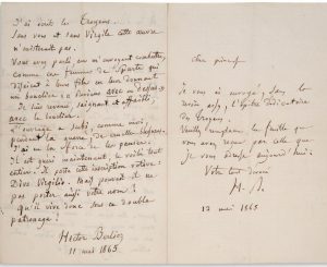 L.A.S. «Hector Berlioz», 11-12 mai 1865, à la Princesse Caroline de SAYN-WITTGENSTEIN ; 3 pages in-8 d'un bifeuillet.