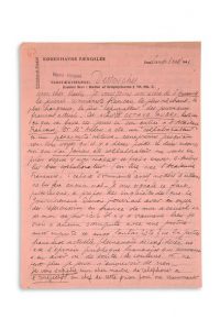 L.A.S. «LF Destouches», [Prison de Copenhague] 8 avril 1946, à son avocat Thorvald MIKKELSEN ; 2 pages in-4 sur papier rose à en-tête de la prison Københavns Fængsler, Vestre Fœngsel.