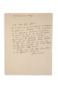 L.A.S., 17 novembre 1949, à Pierre-Jean JOUVE ; ¾ page in-4, enveloppe.
