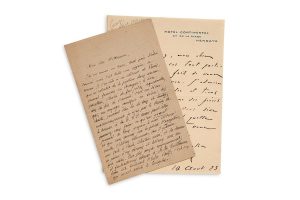 On joint une L.A.S. de Georges COURTELINE à Henry Bernstein : «J'admire tout votre théâtre et tiens le Secret pour une des pièces du siècle» (10 août 1923)