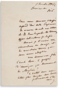 L.A.S. «ton G.», Dimanche soir [«5 décembre 1852» a noté Louise Colet], à Louise COLET ; 1 page in-8, enveloppe.