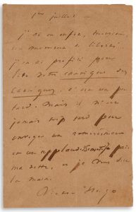 L.A.S. «Victor Hugo», 1er juillet [1860, à Ernest RENAN] ; 1 page in-8 (papier bruni).
