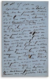 RASCOL ; 2 pages in-8 sur papier bleu.